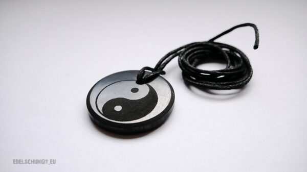 Schungit-Anhänger mit Gravur „Yin Yang“ – ca. 28 mm aus original Karelien-Schungit