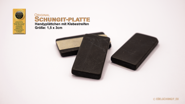 Schungit ist ein seltenes Mineral, das sich durch seine bemerkenswerte Fähigkeit auszeichnet, in Laborstudien wurde zum Beispiele untersucht wie Schungit vor Feldern (EMF) schützen kann. Eine der Hauptquellen von EMF im Alltag ist das Mobiltelefon / Handy. Die Shungit-Platte für das Handy wird aus einem einzigen Stück natürlichen schwarzen Shungit-Steins hergestellt, der aus der Zazhoginsky-Lagerstätte in der nördlichen Region Kareliens, stammt. Diese Region ist weltweit die einzige Quelle für natürlich vorkommenden Schungit.