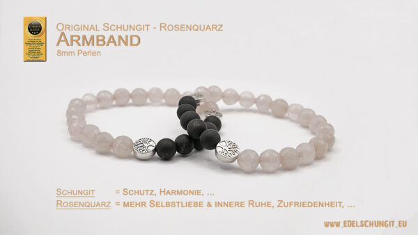 Schungit / Rosenquarz Armband – harmonisches Damenarmband