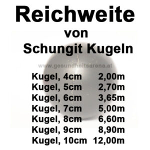 Hier ein detaillierte Überblick der einzelnen Schungit Kugeln und deren Reichweite: